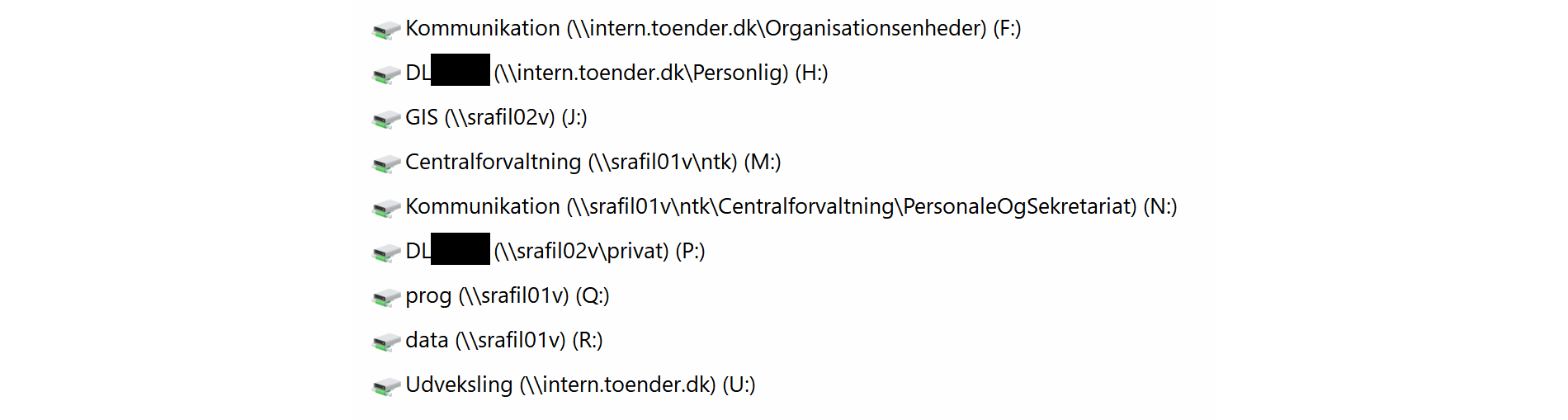 F:drev = Fælles drev for min afdeling // Fælles afdelingsdrev